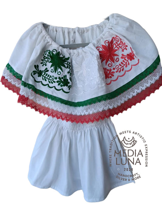 Conjunto artesanal de 2 piezas con bordado de flores.