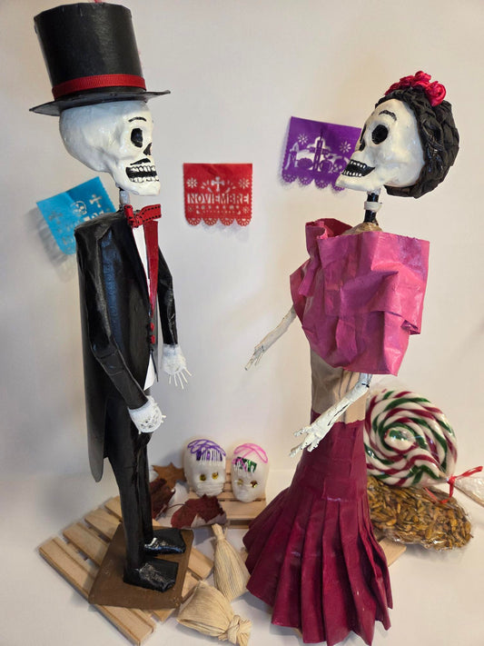 Collection: Catrinas and handmade figures made of paper mache and clay.
