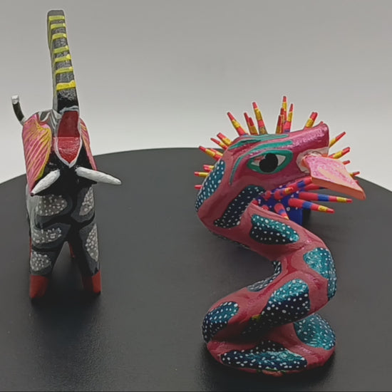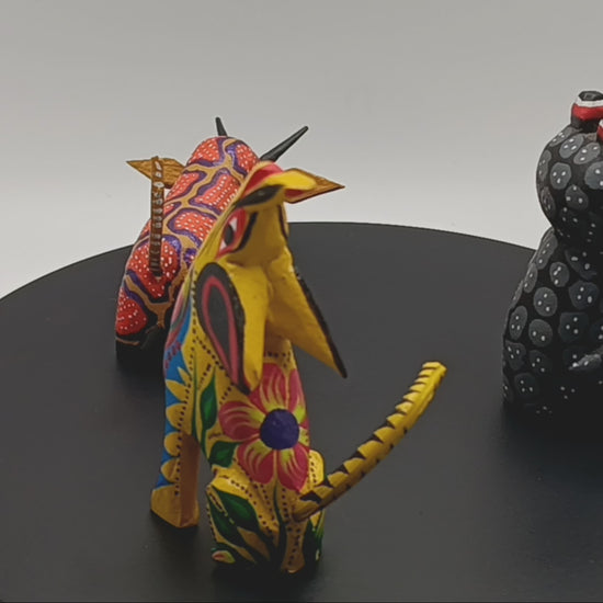Estos esplendidos sets de 3 Mini Alebrijes se caracterizan por combinar una selección de varios animales fantásticos que resaltan por el ingenio y los detalles en su elaboración. Cada conjunto se vende por separado.